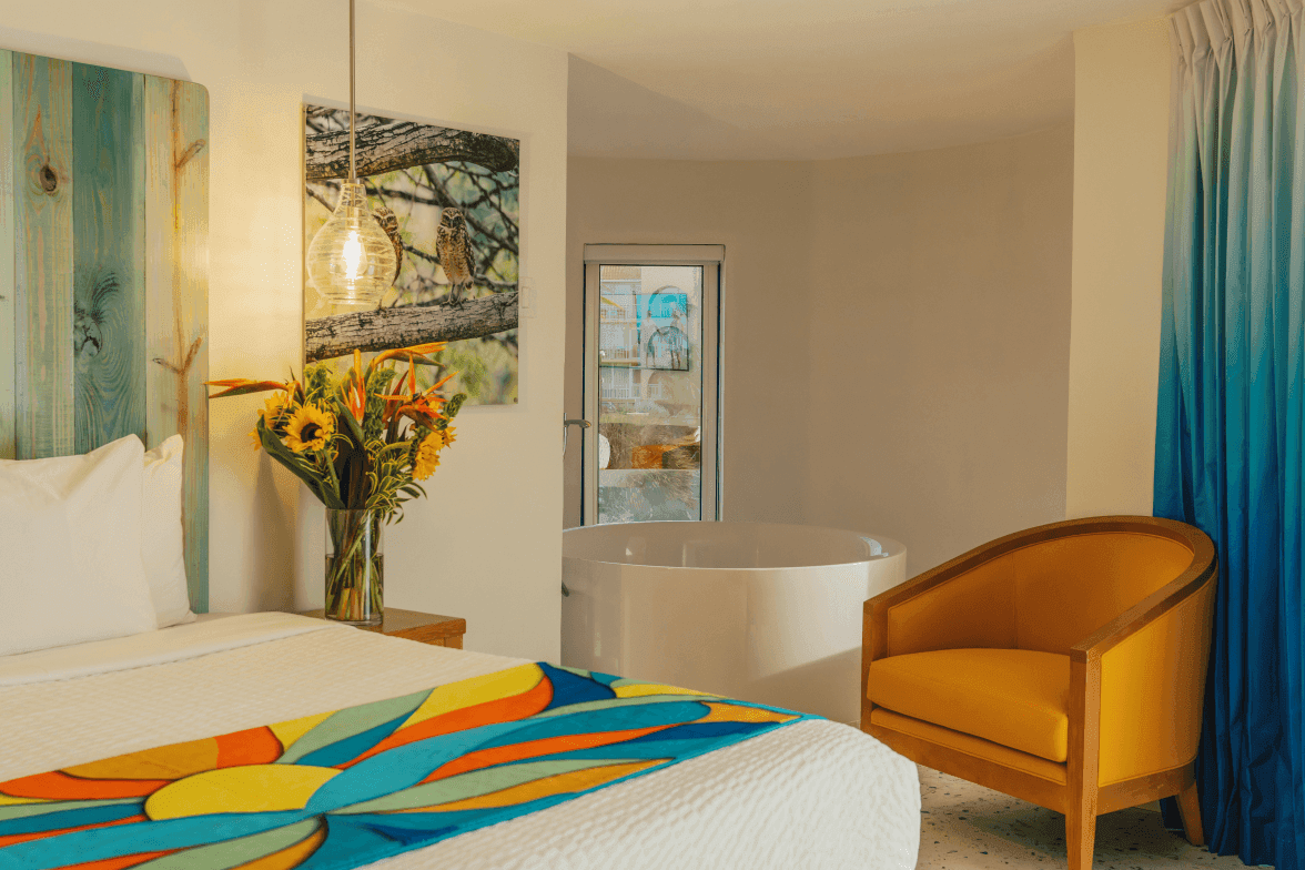 At the forefront of the renovation is the debut of the resort’s new Grand Studios, now the most premium studio category at Amsterdam Manor. Located in the signature tower corners, these thoughtfully designed accommodations offer stunning partial ocean views and feature luxurious touches such as a spacious freestanding bathtub positioned for scenic relaxation or dual rain shower heads for a shared spa-like experience, creating an elevated retreat for guests seeking additional comfort and style.